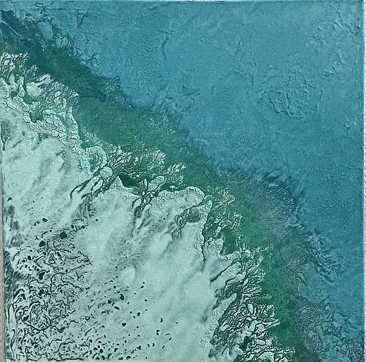 Begegnung, 2024, Acryl, Marmormehl auf Gewebe, 60x60 cm