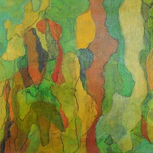 Platane 4, 2015, Acryl, Ölkreide, Frottage auf Leinwand, 37x37cm