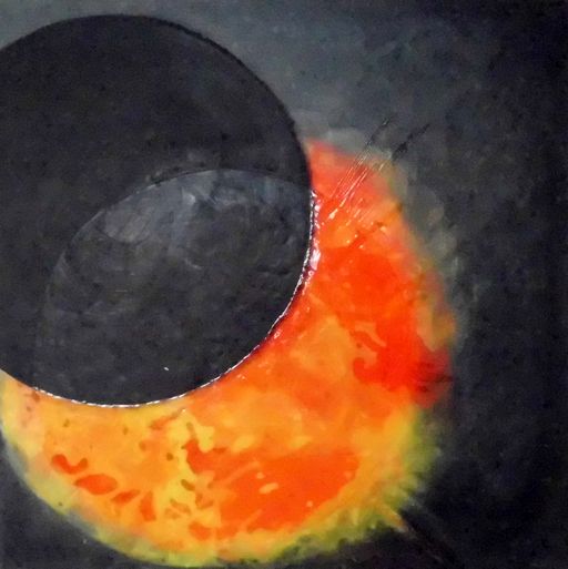 Sonnenfinsternis, 2016, Acryl, Gel, Frottage, Ölkreide auf Leinwand, 47 x 47 cm