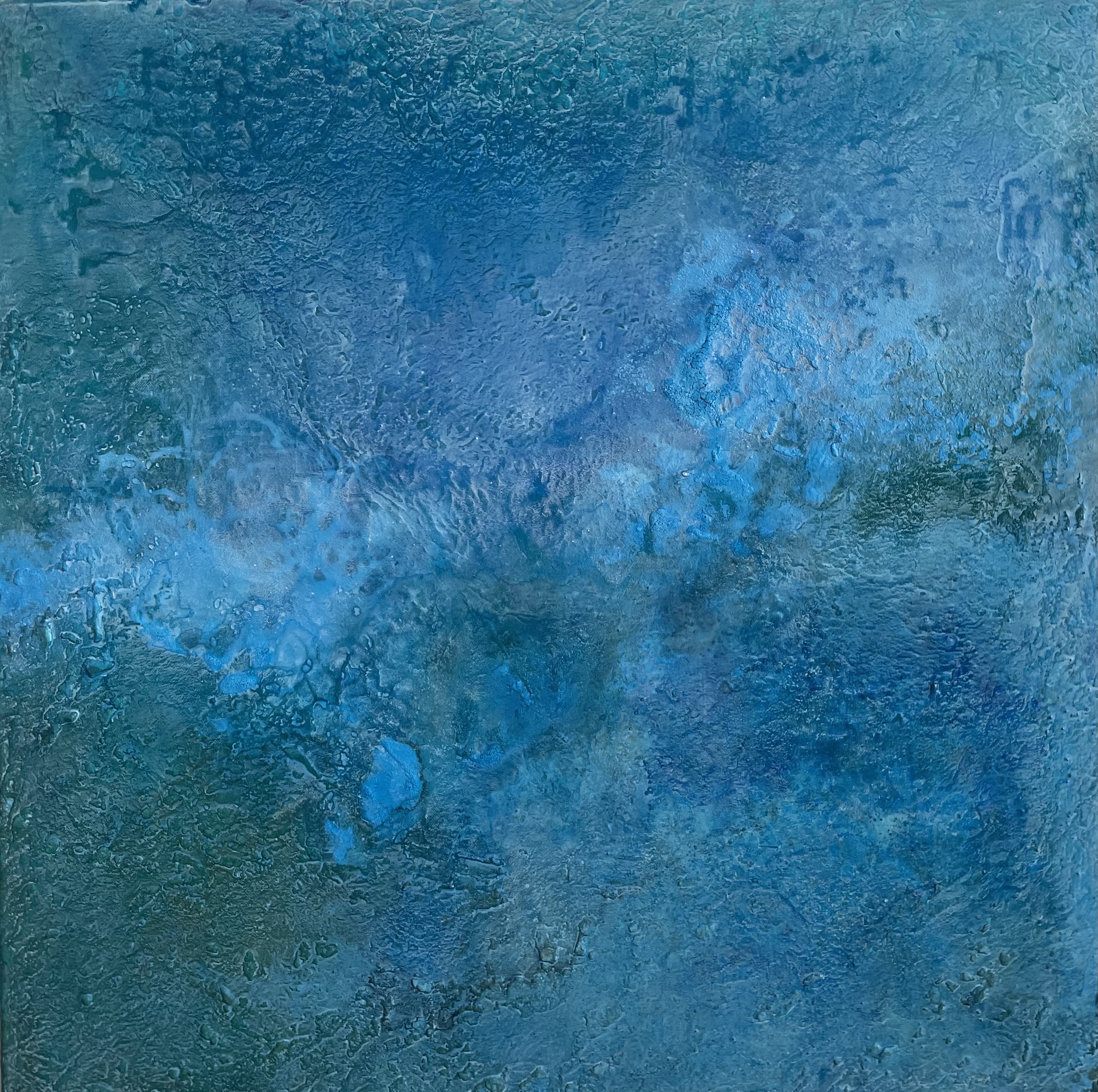 Blaualgen, 2022, Acryl, Marmormehl auf Leinwand, 70x70