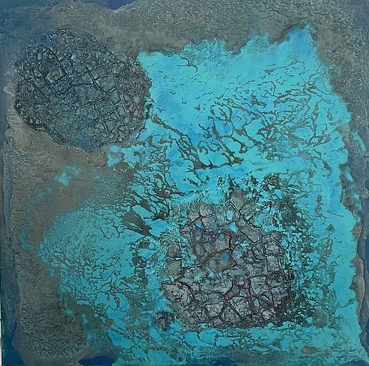 Skylla und Charibdis, 2023, Acryl, Marmormehl auf Leinwand, 70x70