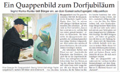 Offene Ateliers 2012 auf dem Quappenhof 2012 beteiligt sich der Kulturhof erstmals am Aktionstag "Offene Ateliers": Am 6. Mai stellt die Wahl-Quappendorferin Ingrid Harks-Hanke gemeinsam mit der Berliner Künstlerin Margrit Wöhler im Vereinshaus auf dem Quappenhof aus. Interessierte können sich im Quappen-Malen versuchen. Quelle: MOZ, 30.4.2012 Artikel auf moz.de |
